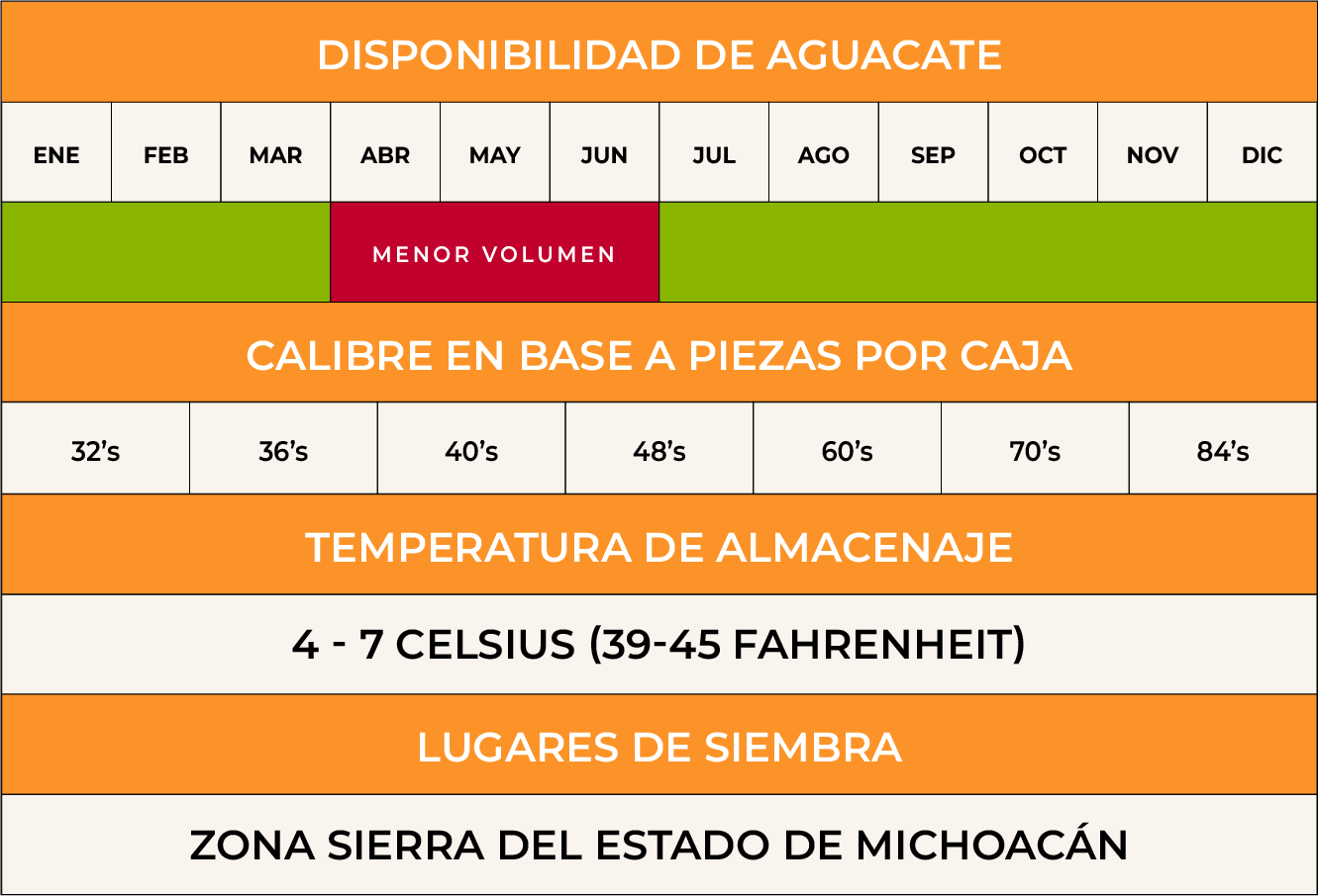 Cosecha con disponibilidad del producto durante todo el año, con menor volumen durante los meses de abril a junio.