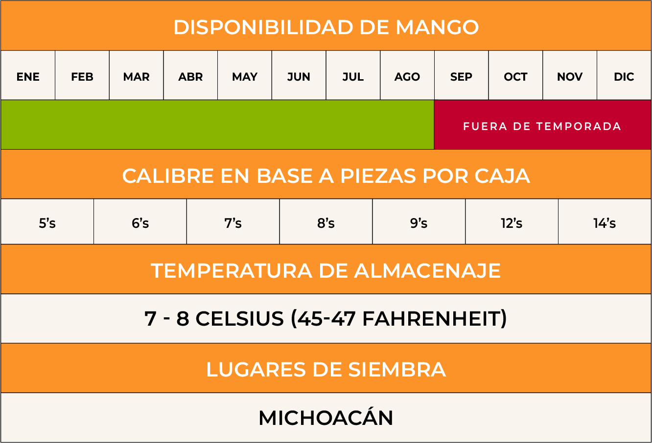 Cosecha en los meses de Febrero a Agosto en los estados de la costa pacífico: Guerrero, Michoacán, Colima y Nayarit.