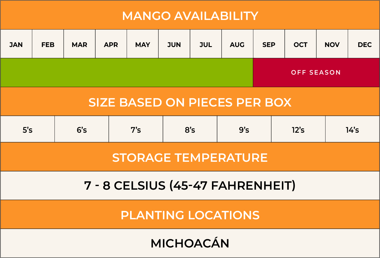 Harvest in the months of February to August in the Pacific coast states of Guerrero, Michoacán, Colima and Nayarit.